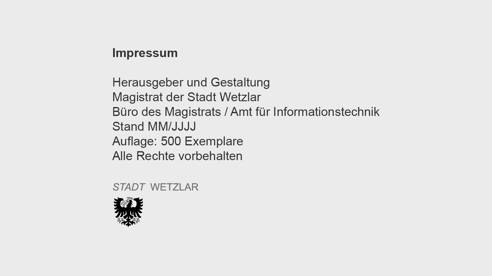 - Namen des Herausgebers (Magistrat der Stadt Wetzlar, ggf. Amtsbezeichnung und/oder Abteilung)