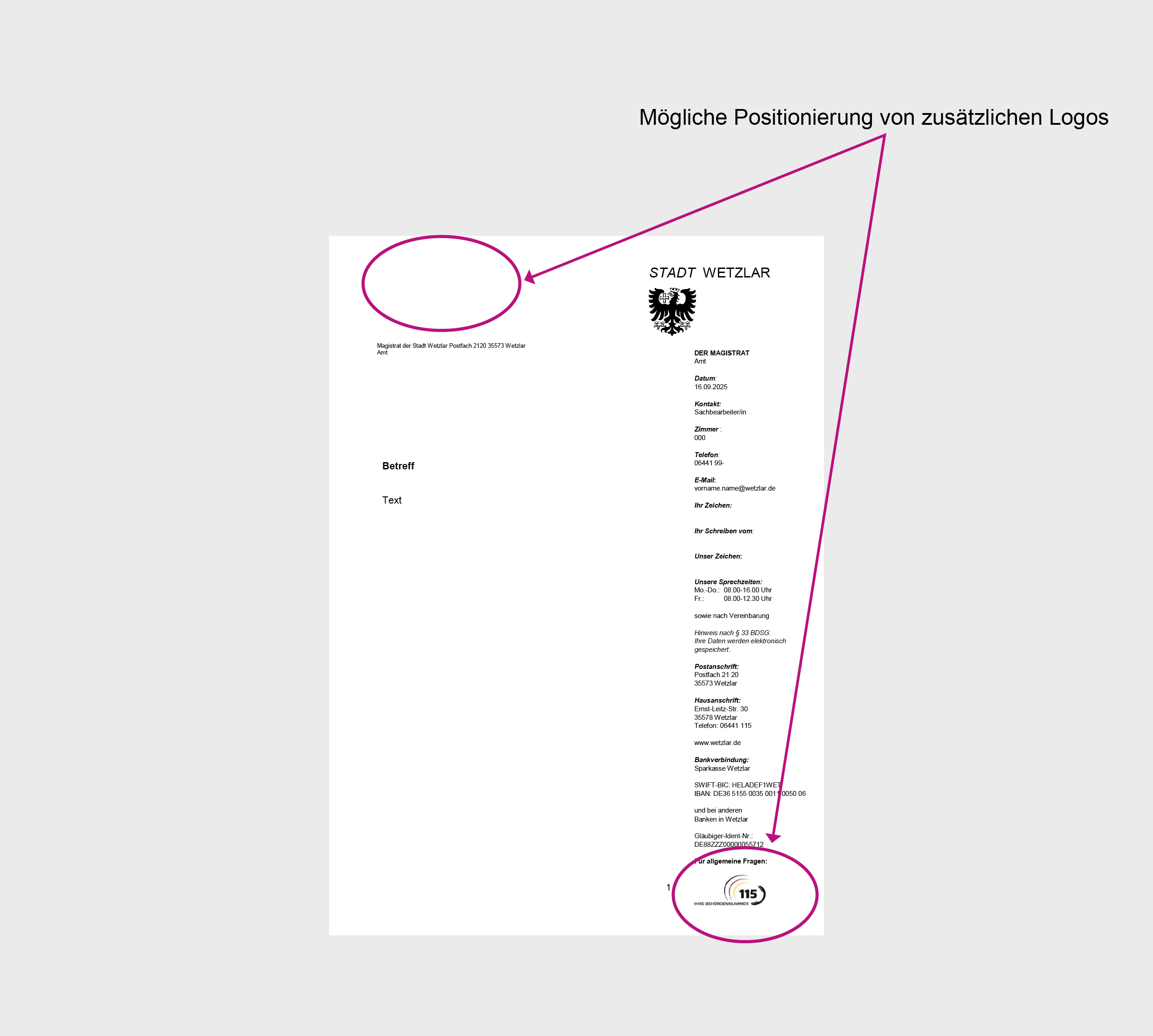 Wenn die Stadt Wetzlar gemeinsam mit weiteren Institutionen öffentlich auftritt, wird das zusätzliche Logo des Kooperationspartners, in der Größe passend zum städtischen Logo, verwendet.