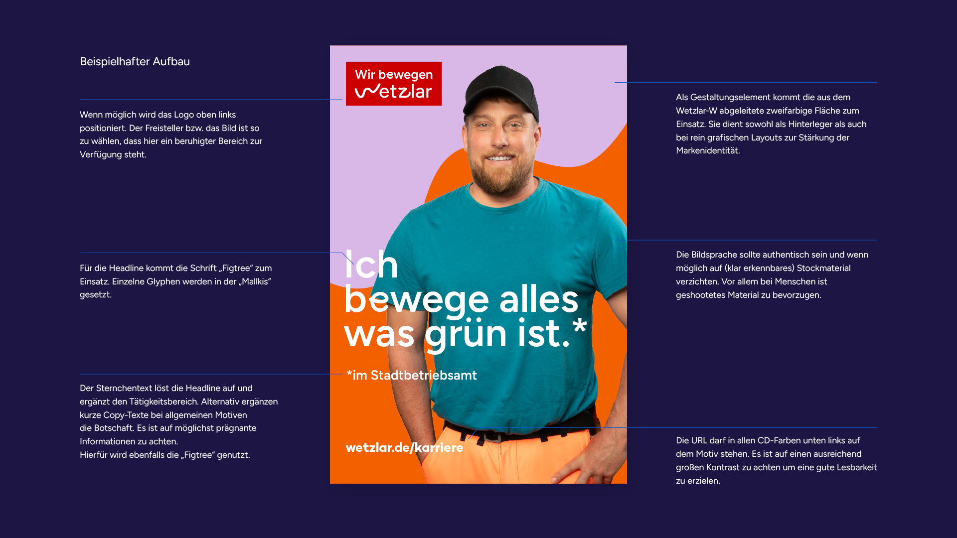Mit diesen Grundlagen wird es möglich, bekannte und immer wiederkehrende Kontaktpunkte wie Social Media, Webseiten, Printmedien oder persönliche Kommunikation nicht nur einheitlich, sondern auch modern und kontextgerecht zu gestalten. Durch die klare Struktur des Corporate Designs werden diese Berührungspunkte ansprechend und professionell präsentiert, während die Flexibilität des Gestaltungskonzepts sicherstellt, dass sie individuell auf die jeweiligen Anforderungen und Zielgruppen zugeschnitten werden können. So bleibt die Arbeitgebermarke stets aktuell und relevant, ohne an Wiedererkennbarkeit oder Authentizität zu verlieren. Dies stärkt langfristig die Wahrnehmung und das Vertrauen in die Arbeitgebermarke.
