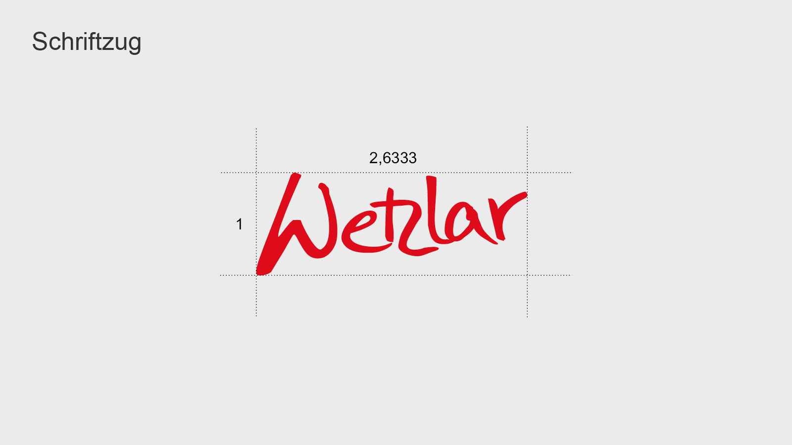 Der Schriftzug „Wetzlar“ kann als Gestaltungselement variabler verwendet werden. Auf dem offiziellen Briefbogen wird er nicht verwendet. Das Seitenverhältnis des Schriftzuges beträgt 1 zu 2,6333, dieses darf nur proportional verändert werden.
